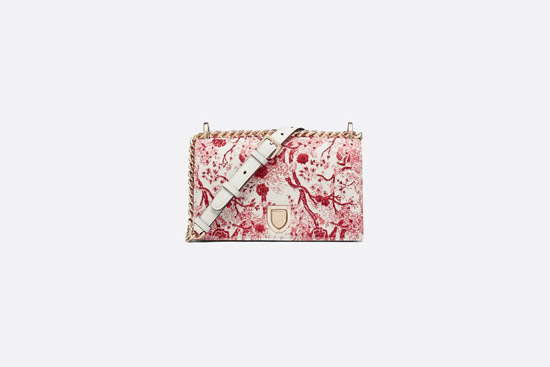 紅色白底的約依印花圖案,乍一看有種水墨畫(huà)的感覺(jué)。基本上大火的幾款包,LADY DIOR,馬鞍包,DIOR BOOK托特包和DIORAMA,都出了限量款。